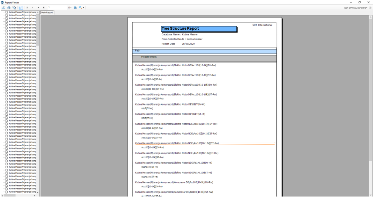 Only the Report of the Tree Structure pertaining to the Database currently open is accessible. If you want to generate the Report of another Tree structure, please first open the regarding Database.