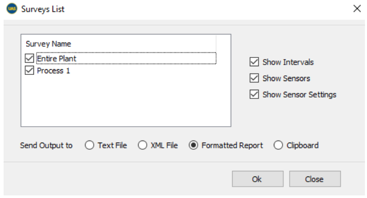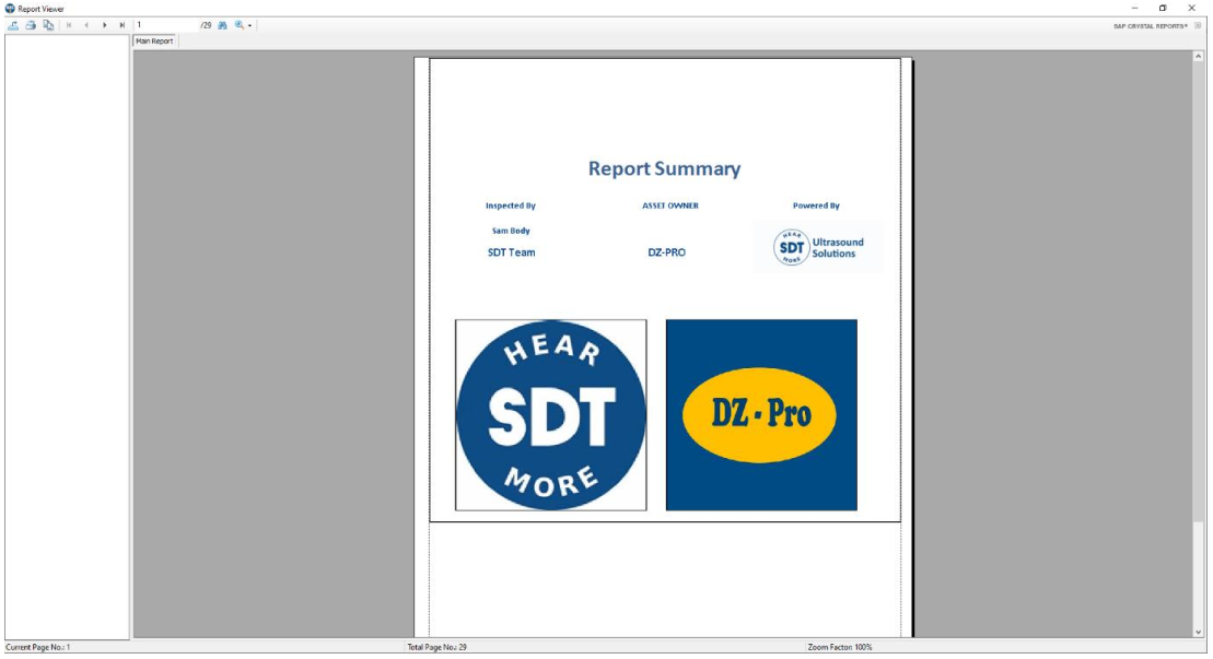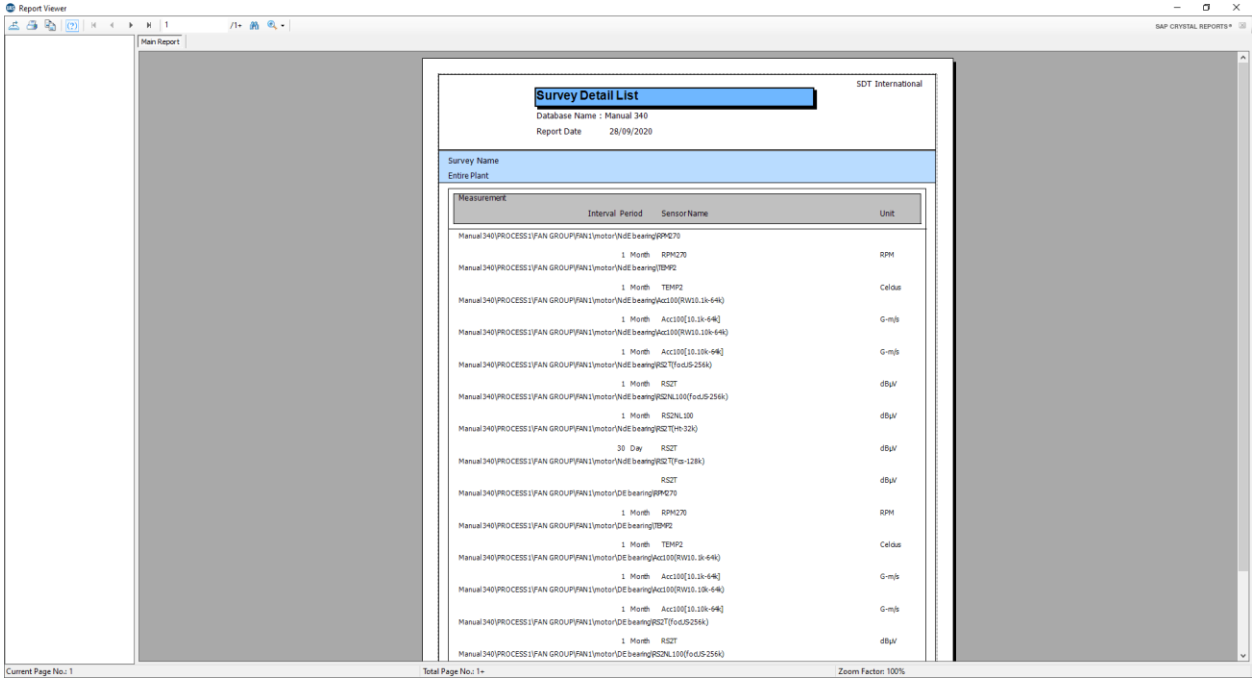 The software offers the possibility to generate a report of: The last survey uploaded in a specific SDT170.