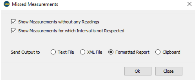 The Report will show, or hide, the Measurements without any Data and the Measurements for which the data collection interval is exceeded, by ticking or not the regarding check boxes.