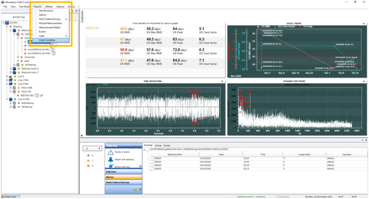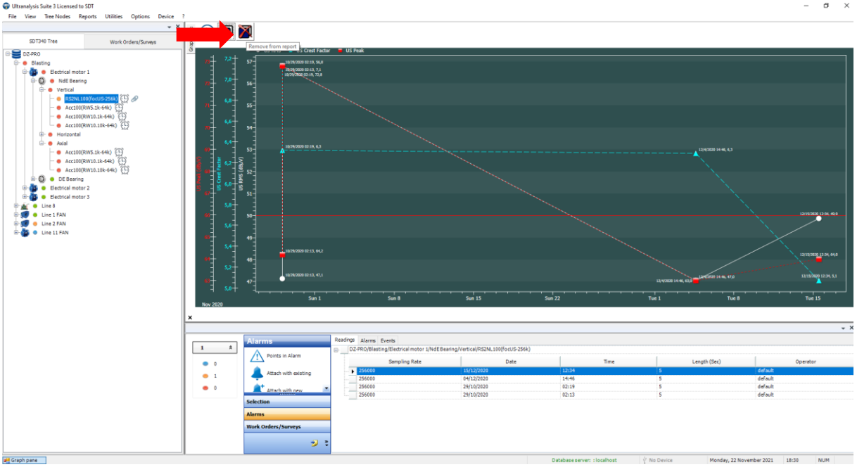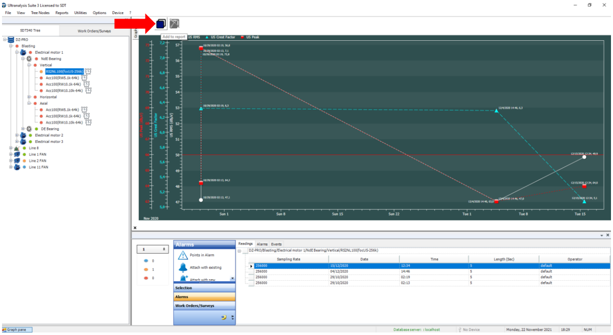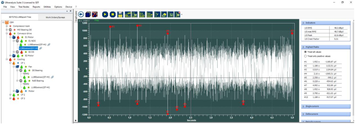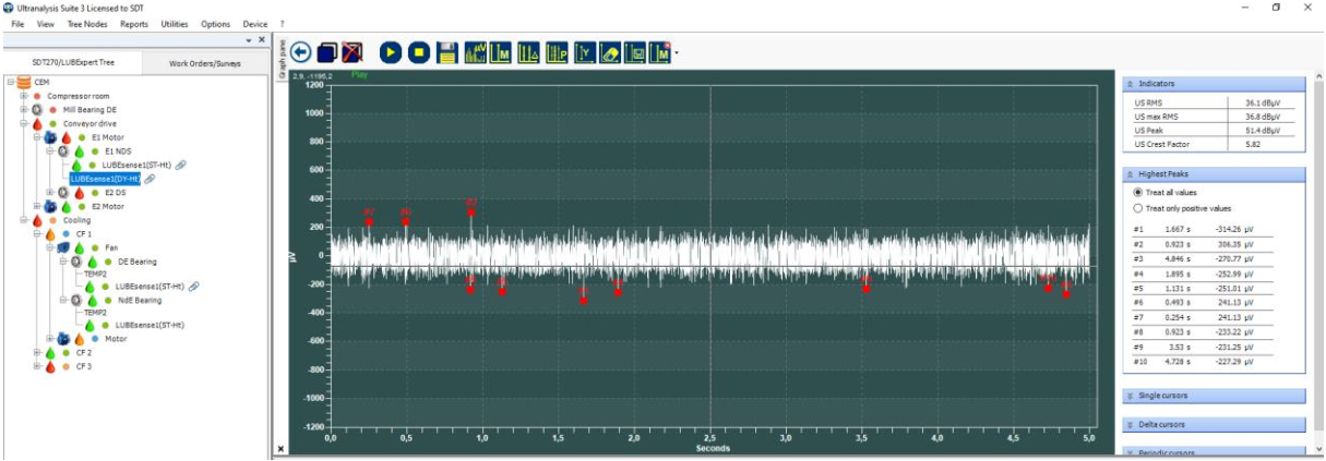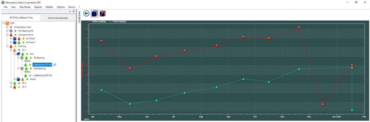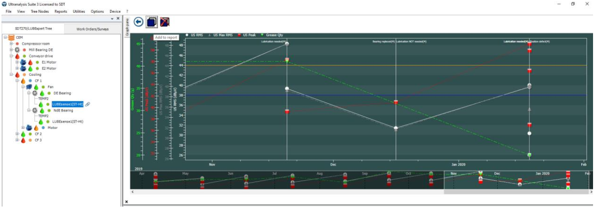 You can do the same with all graphs in you UAS3: TWF & Spectrum for both Ultrasound and Vibration, Temperature, RPM, as well as with all graphs specific to LUBExpert.