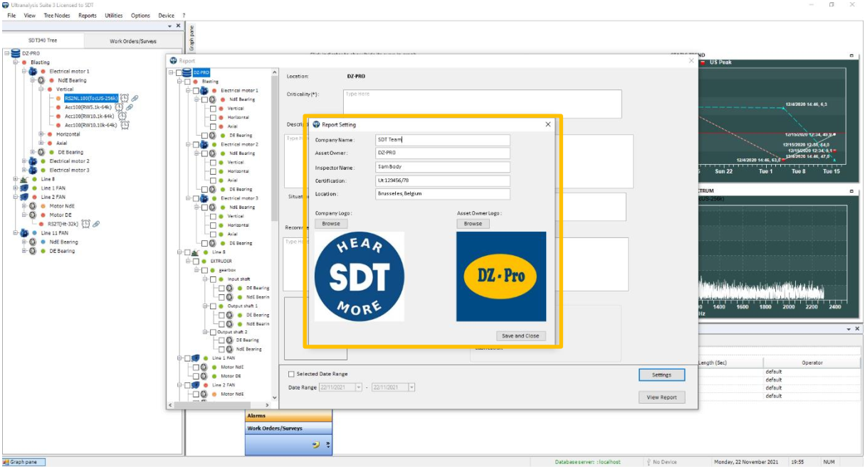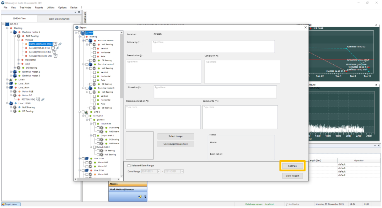 When reporting LUBExpert data, there is no difference in the settings. You will select all graphs you need, all measurement points you need, enter your conclusions and recommendations and generate the report:
