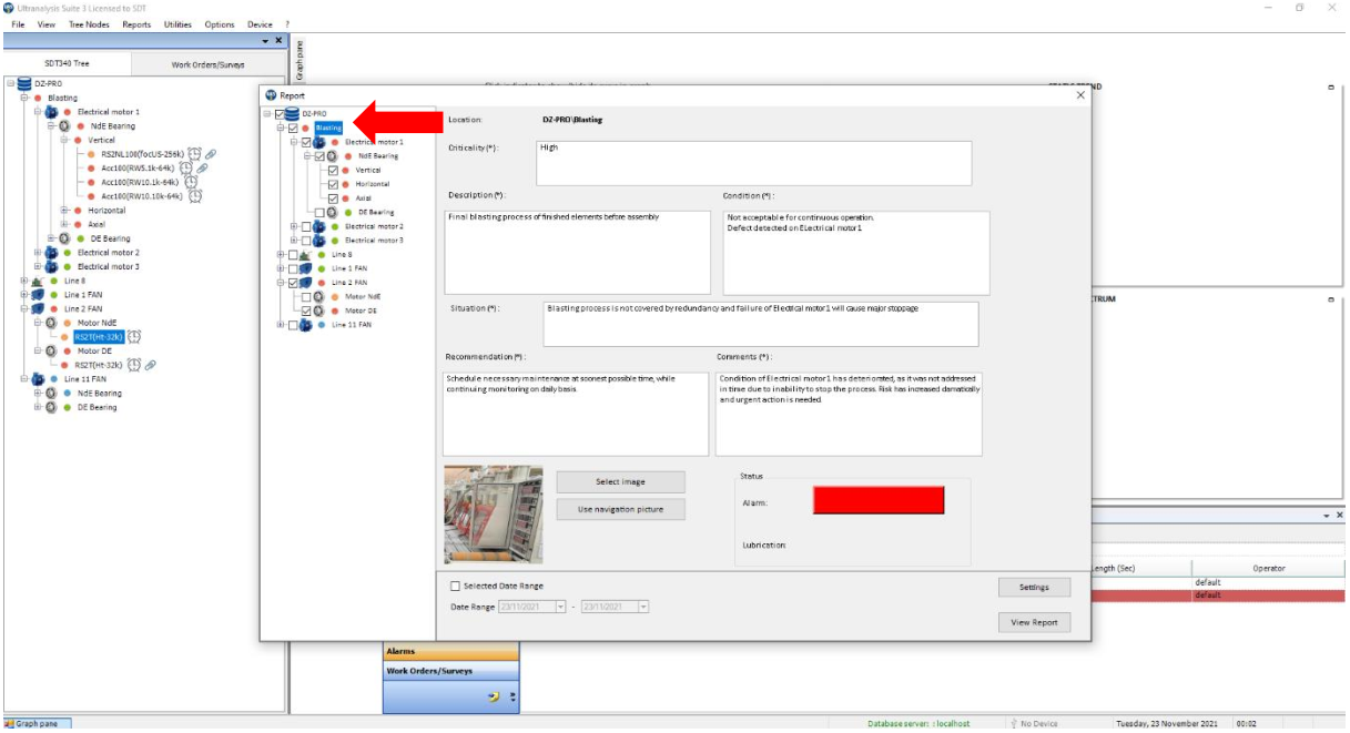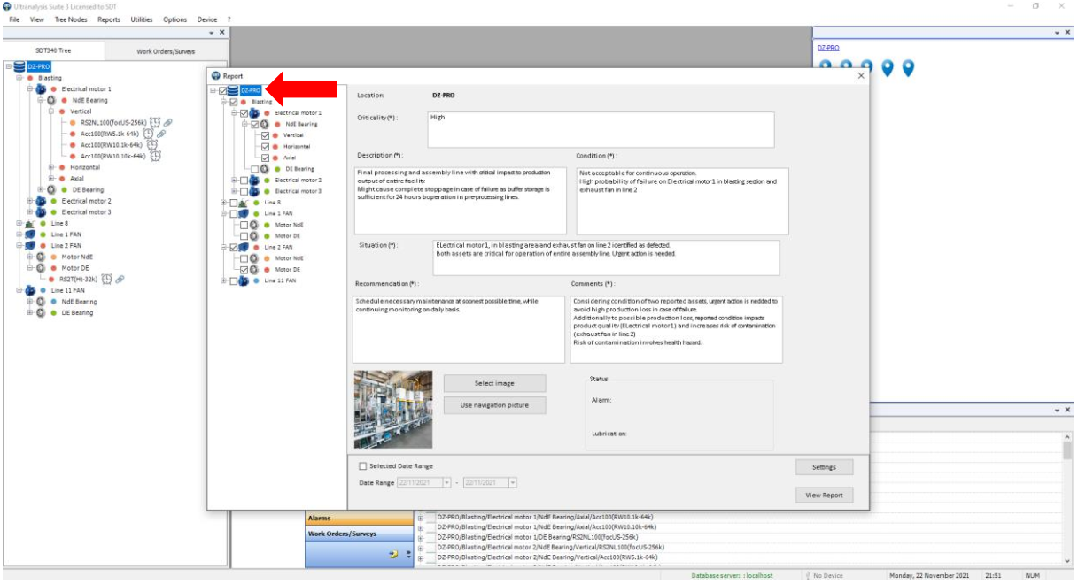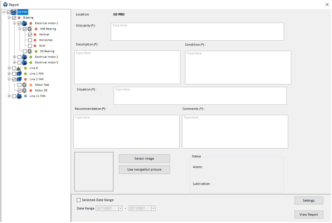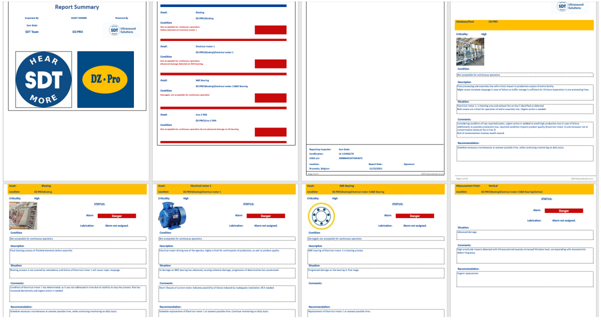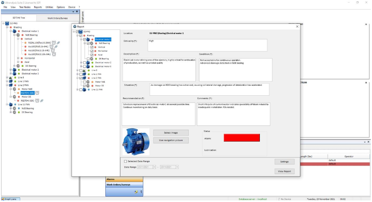 The Asset Condition report is fully customizable report that includes all necessary information. It is ideal tool for all involved: end user, service provider, CM technician or engineer, Reliability team, management. The report contains all information already available in UAS3, as well as pre-defined fields to enter conclusions such as condition, recommendations, situation, description, criticality and other.