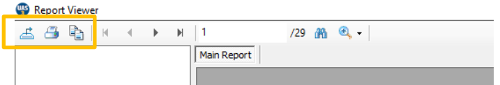 In the top left corner, you can choose to copy the currently displayed page, print the entire report, or export it in different formats: